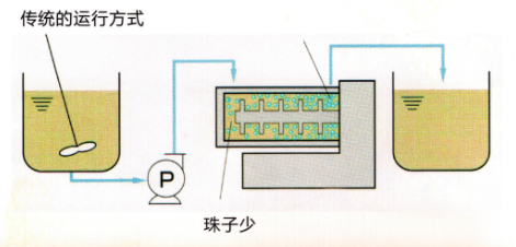 ![]() 循環(huán)操作只需一個(gè)或兩個(gè)攪拌桶實(shí)現(xiàn)循環(huán)砂磨,而且攪拌桶內(nèi)粗顆粒會快速沉淀而優(yōu)科學(xué)入砂磨腔砂磨。 |